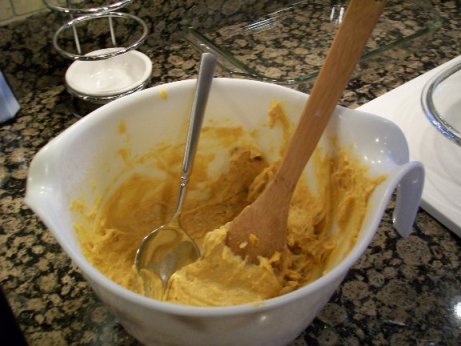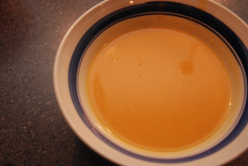 And what I got for my efforts was a beautiful, creamy butternut squash soup! It was so pretty! My first soup! I scooped myself a bowl, took some pictures and slurped my first spoonful.