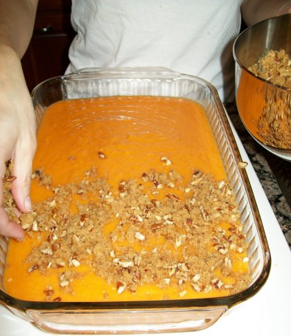 During prep, I cut up my squash and chatted with David and Christa in the kitchen. When I got to the stringy, seedy part I looked around for instructions on what to do next. Christa said, “You need to get in there with a spoon and dig it out, like with a pumpkin.”