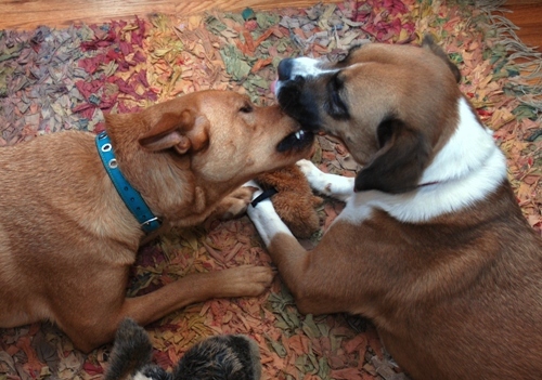Meet Maggie, my sweet baby lovey love who has mostly good days. Maggie is pictured here and with her bestie, Pumpkin, who, like Maggie, is almost always a good dog. Aw.