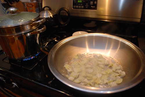 Tom put his artichokes on to steam and I started my ritual of reading the recipe 42 times. The difficult thing about Choose Your Own Adventure Artichoke Risotto was that there was a lot more to read, plus I think I made a new choice each time I read it, but that definitely made it more fun, especially for me since, ironically, I don’t really like working from recipes anyway. Choose Your Own Adventure became “Choose Your Own Adventure and Cross your Fingers You Can Remember What You Chose Last Time and Try Not to Fuck This Up, You Culinary Moron,” but because Sarah added that one JVV Original version in there (which I think she did to save me from myself), I was pretty self assured that no matter what happened in the end, it wouldn’t kill us. You gotta have goals.