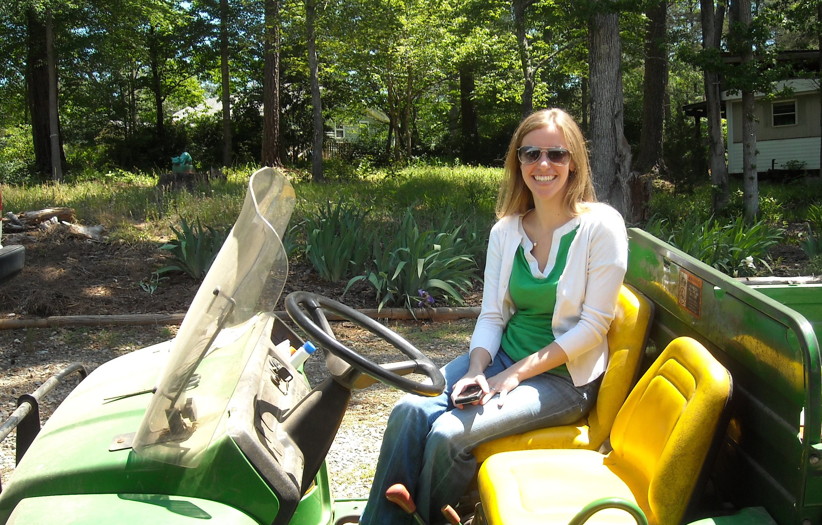 While the squash was cooking, Lauren and I took the tractor out to visit Mama Goat and the Country Dogs (note to Lauren: that would be a good band name). Mama Goat was super preggo and we were hoping for a couple of Mother’s Day miracles, but she just ate grass while Country Dogs chased pine cones. People, this is what life is all about.