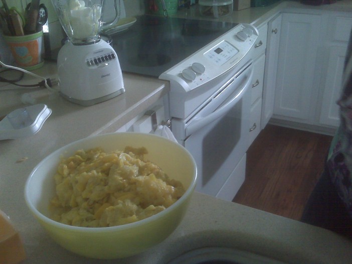 In the days before Mother’s Day, Lauren read to me an e-mail from Judy wherein she painstakingly listed every item we could expect to see on our big, ole-fashioned, Southern Sunday dinner plates: cheesecake. So when we got to Judy’s house Sunday morning, I was muy surprised to see squashes in her sink and onions on her counter. What are them for? Squash casserole. With onions. Bleck.
